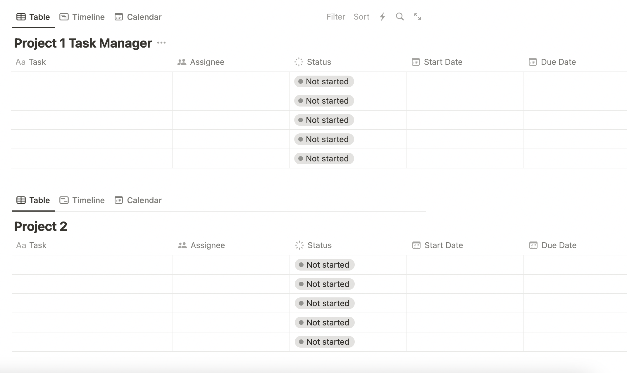 Tutorial: I gave a brief tutorial on how to use Notion on one of the first days of the course, explaining and demonstrating the basic functionalities described in the template. We had the students use the task manager for their first project, even though they were working individually, so that they would get more comfortable with keeping track of their tasks in this way. For the second project, I did a review demonstration of sharing the task manager with the whole team and with both of the instructors so that we could see how they used it. I encouraged the students to decide in their teams who was responsible for inputting tasks and updating the status, and how they would break down tasks for the project. I also encouraged them to explore functionalities not built into the template in case they found any that were useful to them.